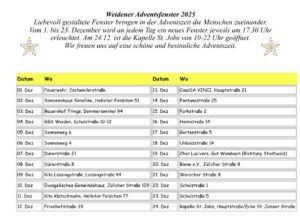 Adressen hier: https://wirfuerweiden.de/event/adventfenster-2025/